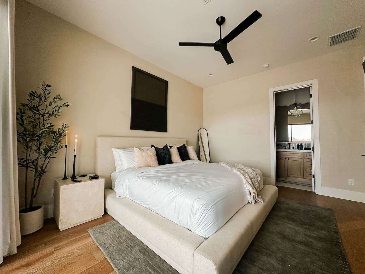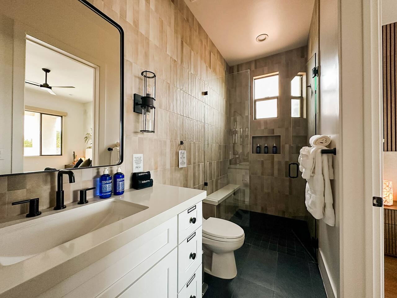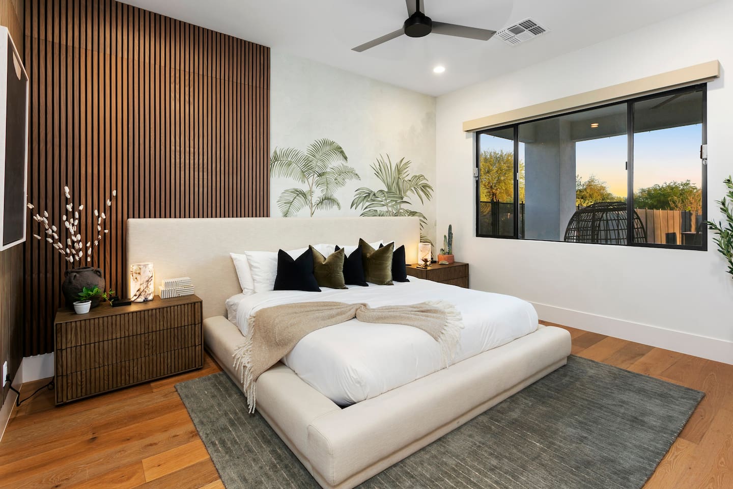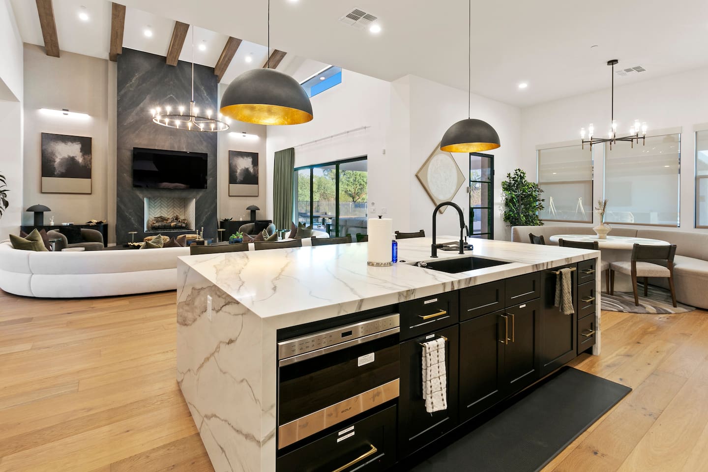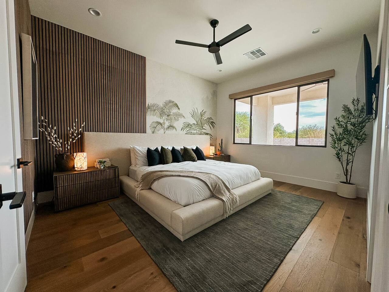 Rooms & Spaces Private Suites: Retreat each night to spacious, elegantly appointed bedrooms featuring premium mattresses, plush linens, and serene décor. Many offer private or semi-private bathrooms, ensuring comfort and privacy for every guest. Nature-Inspired Movie Lounge: Step into a one-of-a-kind entertainment retreat where the outdoors meets the big screen. Our 132-inch projection screen, powered by a state-of-the-art AWOL short-throw projector, transforms the room into a private cinema—perfect for movie nights, binge-worthy series, or game-day excitement. Designed with a calming, nature-themed aesthetic, the space blends comfort with a touch of the outdoors, offering guests a cozy yet elevated vibe. The plush sectional doubles as a couch bed that sleeps up to 4, making this the ultimate spot for families, kids’ sleepovers, or friends who want to combine movie magic with a restful night’s sleep. Whether you’re looking to unwind after a day of golf and desert adventures or create a memorable family movie night, this room is built to impress and designed to relax. Spa-Inspired Bathrooms: Indulge in walk-in showers, soaking tub, and luxury toiletries that transform daily routines into spa moments. Grand Living Room: A sunlit great room with soaring ceilings, designer furnishings, and walls of glass that open seamlessly to the outdoors—perfect for gathering, relaxing, or celebrating. Gourmet Kitchen & Dining: A chef’s dream with top-tier appliances, expansive prep space, and seating for your entire group—ideal for cooking together or enjoying a catered dinner. Entertainment Pavilion: Your own private resort hub featuring a state-of-the-art golf simulator, lively ping pong battles, classic arcade speedball challenges, competitive foosball matches, a pickleball court, a basketball court (half) and a putting green for golf enthusiasts of all levels. A space designed for laughter, friendly rivalry, and unforgettable memories. Outdoor Oasis: A resort-style pool and spa featuring a swim-up bar and a soothing water wall, surrounded by shaded lounge areas with a fireplace, a BBQ station, and manicured grounds enhanced with cooling outdoor misters to keep you comfortable even on the hottest days. Gather around the cozy firepit for starlit evenings filled with warmth and conversation—perfect for sun-soaked afternoons and magical nights alike. List of amenities include: A pickleball court Half court basketball Celebrity Greens Putting Green (outdoor) Cornhole In pool seats Resort style pool with LED lighting and spa Firepit Misting system Convenient Parking: Ample on-site parking to accommodate all guests with ease. -------------------------------------------------------------------- Scottsdale Highlights & Travel Times 1. Old Town Scottsdale & the Arts District Immerse yourself in walkable galleries, stylish boutiques, Southwestern cuisine, and vibrant nightlife. • Drive time: Approximately 10–12 minutes (about 5 miles). 2. TPC Scottsdale & Waste Management Phoenix Open Home to the famed Stadium Course and its electrifying 16th-hole coliseum—this is golf like no other. • Drive time: Around 12–15 minutes (roughly 6–7 miles). 3. Taliesin West Explore Frank Lloyd Wright’s iconic desert compound and creativity hub—an architectural marvel you won't want to miss. • Drive time: Circa 15 minutes (approx. 7 miles). 4. Scottsdale Arabian Horse Show & Barrett-Jackson Auction (WestWorld) From the grandeur of the Arabian Horse Show to the classic car excitement at Barrett-Jackson and festive Parada del Sol, WestWorld delivers unmatched cultural flair. • Drive time: About 15 minutes (6–8 miles). 5. Arizona Boardwalk Attractions A family entertainment cluster featuring OdySea Aquarium, Butterfly Wonderland, Museum of Illusions, and more—perfect for all ages. • Drive time: Approximately 15 minutes (6–7 miles). 6. Luxury Spas, Shopping & Nightlife Spoil yourself at resorts like The Phoenician or enjoy high-end fashion and evening glamour at Scottsdale Fashion Square. • Drive time: Roughly 10–12 minutes to Scottsdale Fashion Square, and similar to nearby resort venues. Why Staying Here Is a Smart Choice • Central Location: You’re nestled in a serene upscale neighborhood that provides a peaceful refuge—yet you're just minutes from everything that makes Scottsdale unforgettable. • Something for Everyone: Whether it's art, history, golf, horses, family fun, or luxury indulgence, your guests won’t have to travel far. • Quick Access: With most top attractions just a short drive away, guests can maximize their time—whether they’re here for weekend play or a multi-day retreat.