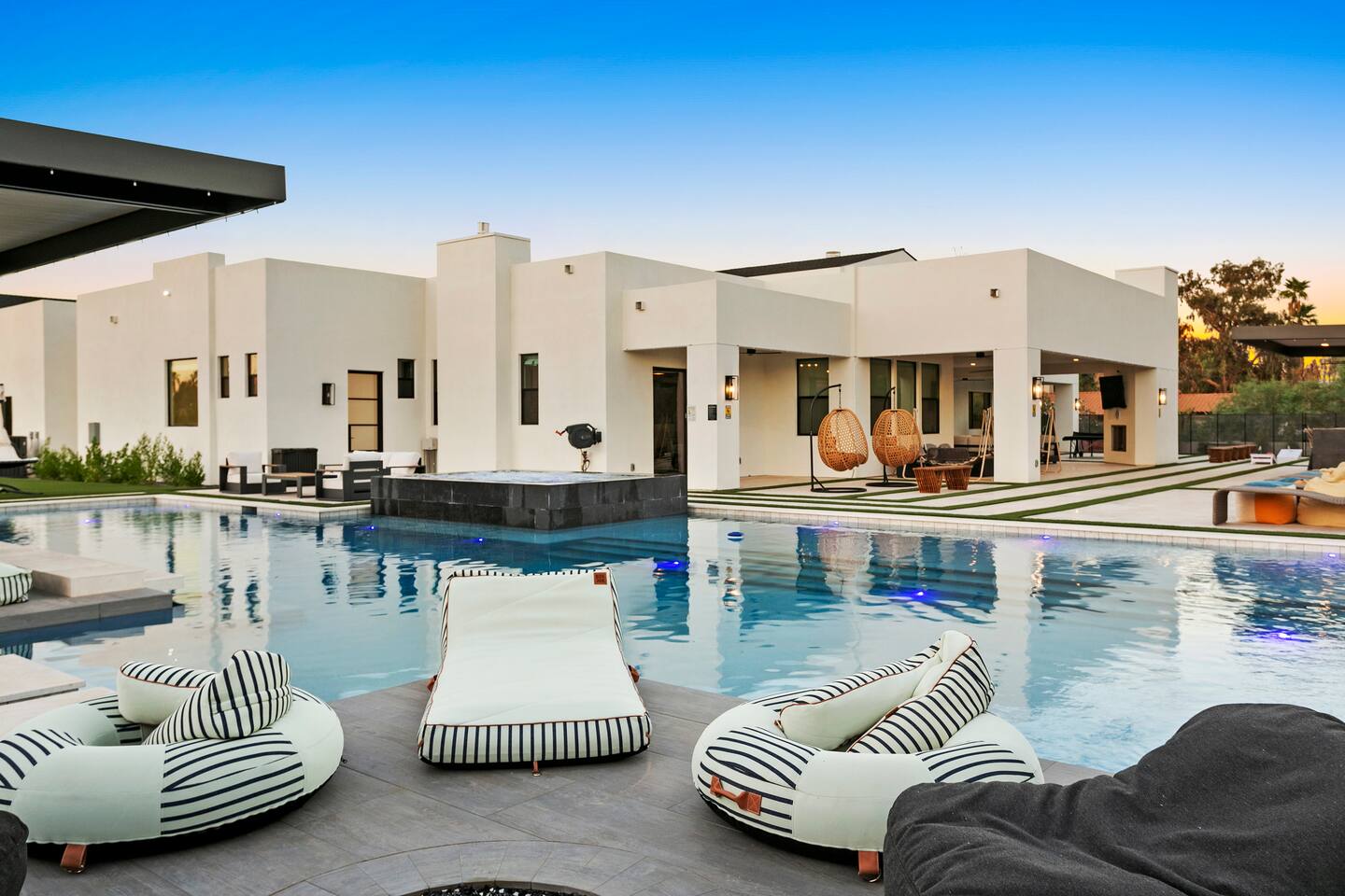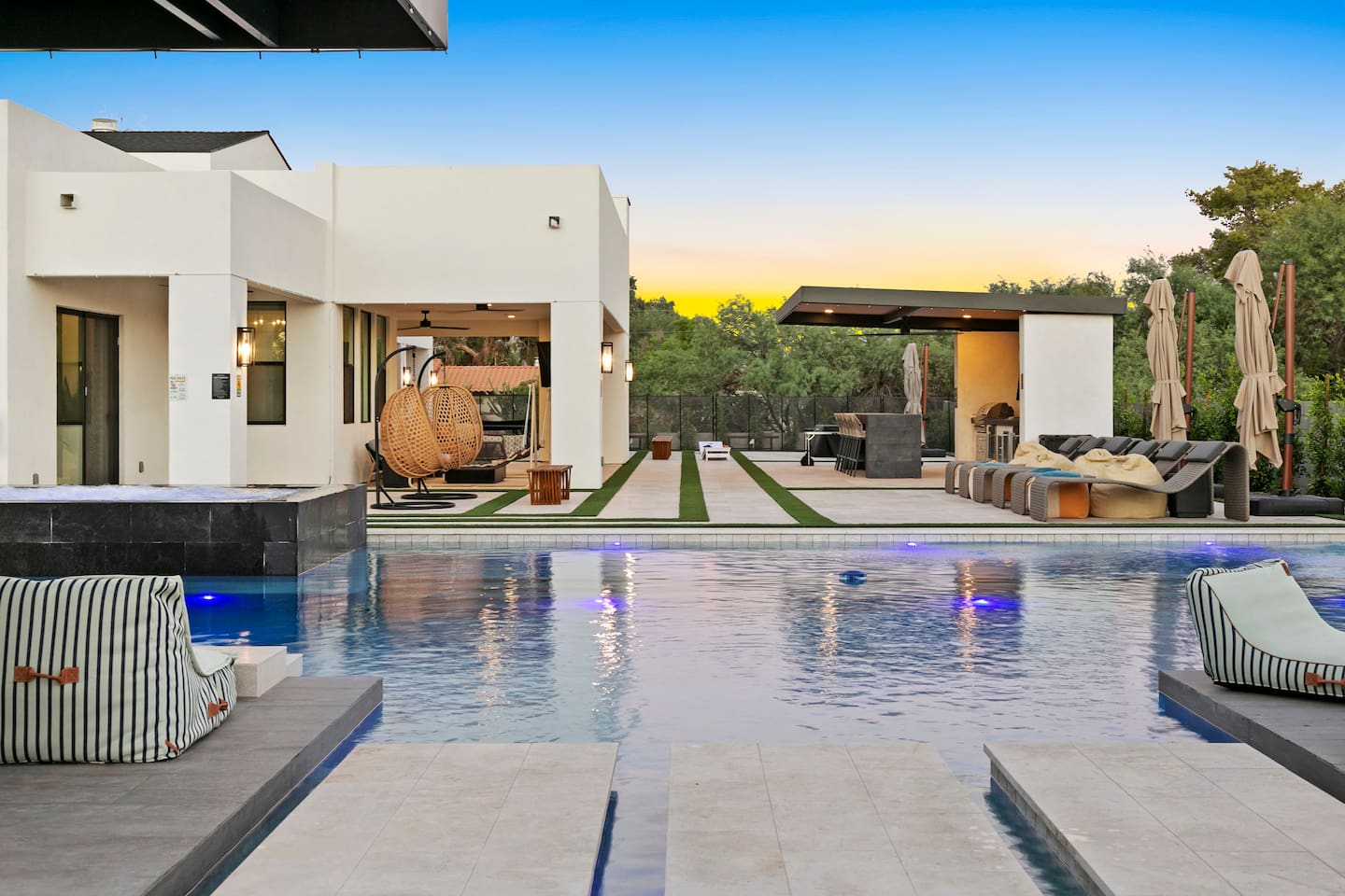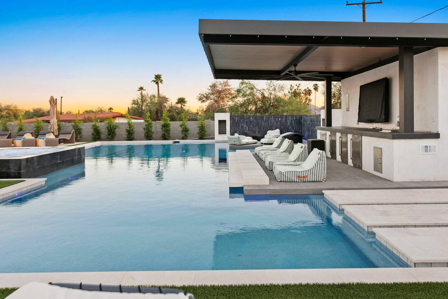 Guest Etiquette & Expectations: Welcome to our home—a place designed for your utmost comfort and tranquility. To maintain the exceptional experience for all our guests and neighbors, we kindly ask you to observe the following: Exclusive gatherings only: Please refrain from hosting parties or large events to preserve the serenity of our community. Respectful ambiance: Maintain a considerate noise level, especially during our quiet hours from 11:00 PM to 7:00 AM. No indoor smoking or vaping: Kindly restrict smoking to designated outdoor areas to ensure a pristine environment. Compliance with laws: Any unlawful activities on the premises are strictly prohibited and will result in immediate removal. Shoes off indoors: To protect our exquisite flooring and maintain cleanliness, please remove shoes upon entering. Careful use of amenities: Treat all furnishings and appliances with care; report any damages promptly so we may assist you. Garbage disposal: Ensure all trash is placed in the outdoor garbage bin, and recycling in the designated container. Parking protocol: Use assigned parking spaces only and avoid obstructing neighbors’ access. Security measures: Ensure all doors and windows are securely locked when leaving the property. Security notice: For the safety and security of our guests and the property, exterior security cameras are installed on-site. These cameras are located outdoors only and are in full compliance with Airbnb’s policies. They are used strictly for security purposes and to help ensure a safe, comfortable stay for all guests. Please rest assured—there are no cameras inside the home or in any private spaces. Pool & spa courtesy: enjoy these amenities responsibly; children must be supervised at all times Pool Safety Alarm Notice: For the safety of all guests—especially young children—our home is equipped with pool alarms on every exit door leading to the pool area. When a door is opened, the alarm will sound continuously until it is manually turned off and the door is closed. Tampering with or removing the alarm batteries is strictly prohibited, as doing so compromises the safety of all occupants. Guests who disable or remove batteries will be held fully responsible for any consequences that may arise from endangering children or other guests. We appreciate your cooperation in helping us maintain a secure and enjoyable environment for everyone. Pool & Spa Usage: Please enjoy our pool and spa amenities at your leisure. Pool heat is subject to an additional usage fee, as outlined below. Spa heat is complimentary. Pool/Spa waivers must be signed if you are planning to use this at the property. To help you avoid unnecessary extra charges, we kindly ask that you turn off all pool and spa equipment when not in use. This ensures both energy efficiency and the longevity of our amenities, allowing us to keep them in pristine condition for all guests. Outdoor Cooking & Appliances: Guests are welcome to enjoy the outdoor BBQ equipment, stove, and any other cooking appliances provided. For safety, please ensure all equipment is turned off immediately after use. We also ask that you leave them clean and ready for the next guest, helping us maintain a high standard of comfort and presentation. Appliances: Please turn off all appliances (coffee maker, toaster, lights etc.), pool/spa, lights, TVs, and shades when not in use or before departure. Rest assured—you have complete privacy during your stay, with the added comfort of knowing help is close at hand if needed. Check-out procedures: We appreciate your assistance by leaving used towels in the laundry basket and attending to any dishes before departure. Note: The laundry basket is located in the laundry room. Key responsibility: Replacement fees apply for lost or unreturned keys/keycards. Registered guests only: Overnight stays are limited to guests included in the reservation; additional guests require prior approval. Events and parties: Written consent is required; special pricing may apply. Concierge Services: We are pleased to partner with PrimeConcierge. If you would like to request any services, please feel free to connect with us. Detailed information, including contact details for PrimeConcierge personnel, will be provided upon request. Additional costs: Pool Heating: Pool heat cost: $325/night (pricing subject to change) with a minimum of 3 nights Our pool and spa can be heated during the cooler months when outdoor temperatures naturally lower the water temperature. We set the system to maintain around 85°F, though actual temperatures may fluctuate depending on weather. Please keep in mind that colder nights make it more challenging to sustain higher water temperatures. For the most comfortable experience, we recommend heating the pool between October 15 and May 31. If you would like the pool and/or spa heated for your stay, please provide at least 3 days’ notice so it is ready upon your arrival. Heating is offered as an optional add-on and should be selected for the entire duration of your stay. It cannot be switched on and off daily. If you choose to discontinue heating mid-stay, we will not be able to restart it, as the water will drop to the overnight ambient temperature (often in the 40s–50s) and can take up to 3 full days to return to 80-85°F.